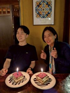 合宿最終日の夕食では、誕生日が近い芦澤先生と、大畠さんをみんなでお祝いしました。