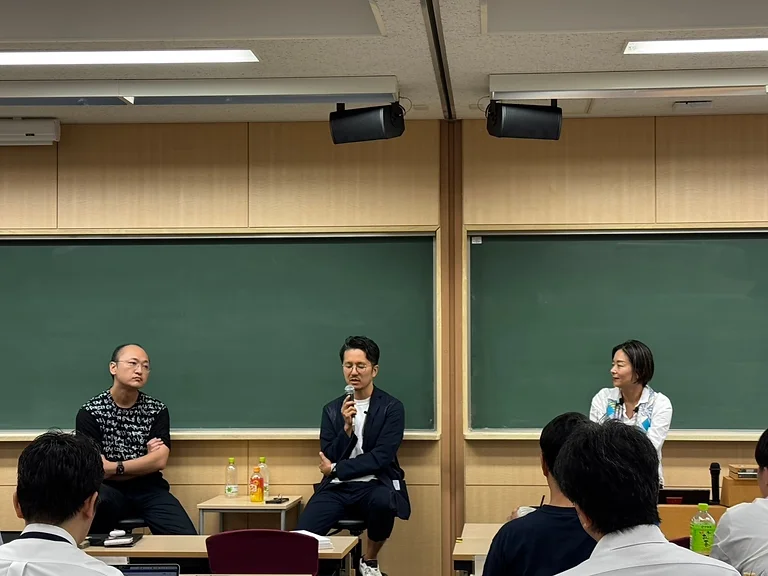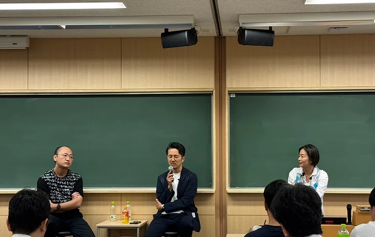 第2回の「起業家に学ぶ」の講義では、株式会社マネーフォワードグループ執⾏役員CoPAの瀧俊雄氏と起業家・エンジェル投資家の有安伸宏氏にお越しいただいて、『大学同級生起業家&投資家に聞くマネーフォワードの起業から今、未来』についてお話しいただきました。「経験したハードシングスとその乗り越えかたについて教えてください」「PMFはどのように測るものであるか?」など学生とゲストの方々との質疑応答が盛んにおこなわれ、講義後の懇親会も大盛況でした。