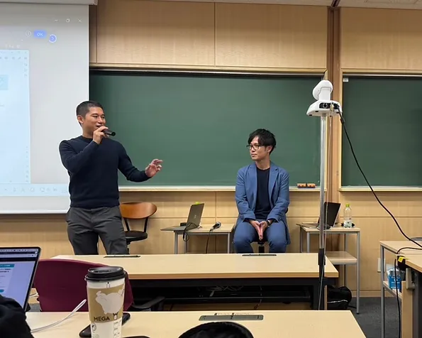 第4回の「起業家に学ぶ」の講義では、出向起業スピンアウトキャピタル代表パートナー奥山恵太氏、株式会社coordimateCEO兼株式会社ドコモgaccoコンテンツプロデュース部飯野健太郎氏にお越しいただいて、大企業発スタートアップをテーマにお話しいただきました。大企業人材等が大企業等に在籍したまま自ら個人資産・外部資金により起業するという”出向起業”という新たなスキームのメリットやインパクトについて理解することができました。