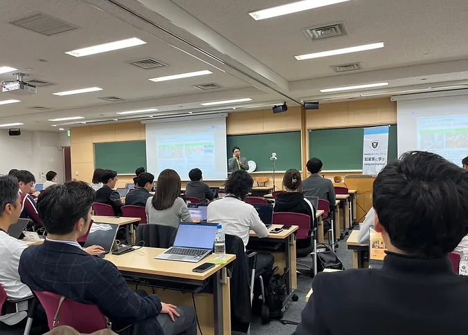 第6回の「起業家に学ぶ」の講義では、株式会社ユーグレナ創業者代表取締役社長出雲充氏にお越しいただいて、スタートアップによる社会課題解決をテーマにお話しいただきました。大企業/政府の努力の上でまだ解決できていない問題はアプローチを変える必要があり、それを担うのがスタートアップであるという”Make a small early success in the hardest field”こそがスタートアップの存在意義であるというお話に大変感銘を受けました。また、「自分にはできないかもしれない」と成功した起業家と自分を比較するのではなく「自分が挑戦するんだ」という熱が生徒に宿ったのを感じました。
